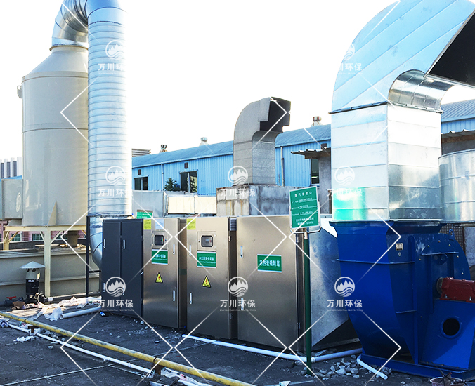 噴漆廢氣主要的成分為有毒的有機氣體和部分粉塵顆粒,首先經(jīng)過通風(fēng)管道將廢氣輸入噴淋塔內(nèi)進(jìn)行清洗除去粉塵顆粒物,進(jìn)到干濕過濾器進(jìn)行干燥和過濾剩余的粉塵,干燥后進(jìn)入UV光解凈化器,利用UV光解凈化器的原理把廢氣分子裂解,生成水和無機物。其次進(jìn)入活性炭吸附塔,利用活性炭的多孔性存在吸引力,當(dāng)活性炭與廢氣接觸時活性炭會吸附廢氣分子,最后污染物被處理過后即可排放。