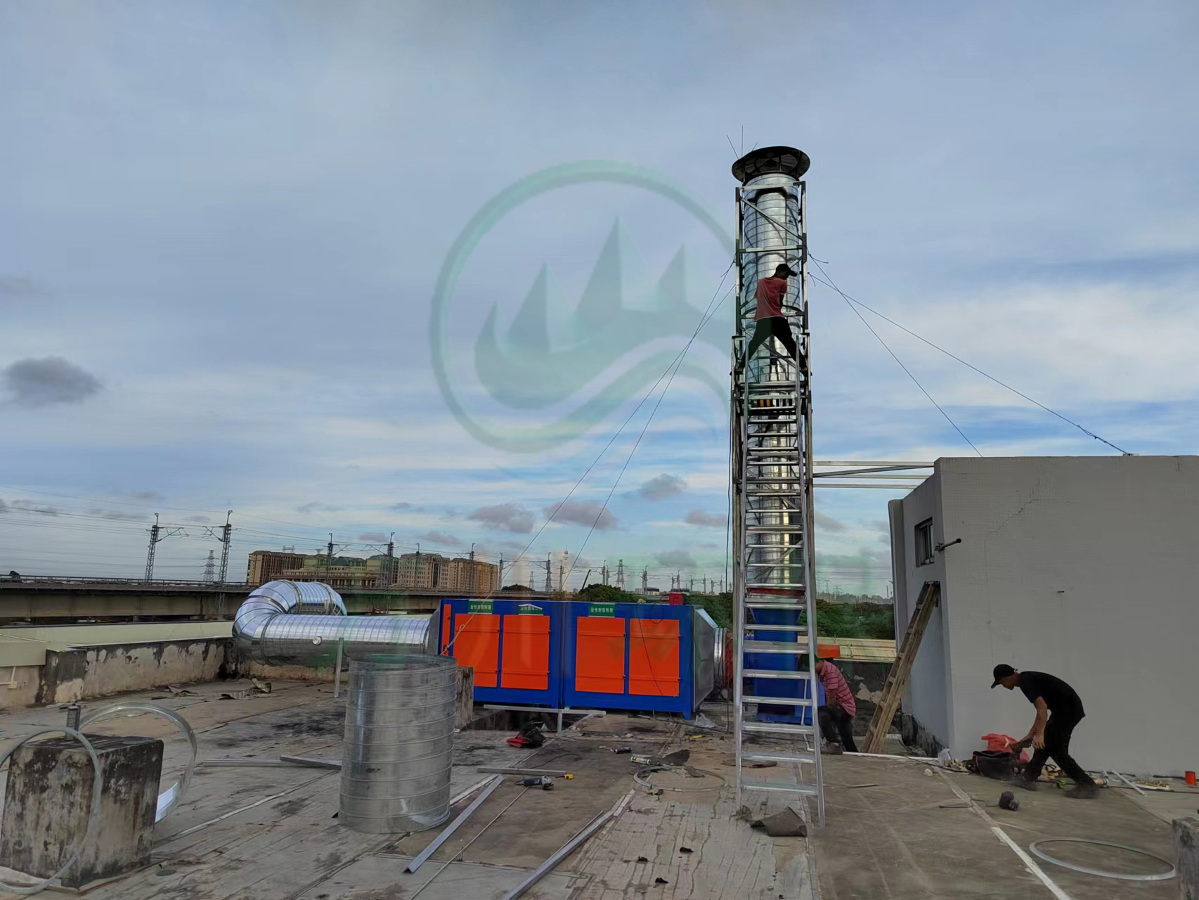 根據(jù)廢氣類型和場(chǎng)地需求我們采用兩級(jí)活性炭吸附法對(duì)其進(jìn)行處理。配套兩臺(tái)1萬(wàn)風(fēng)量的碳鋼材質(zhì)活性炭吸附塔與大功率離心風(fēng)機(jī),自帶自動(dòng)化控制系統(tǒng)。