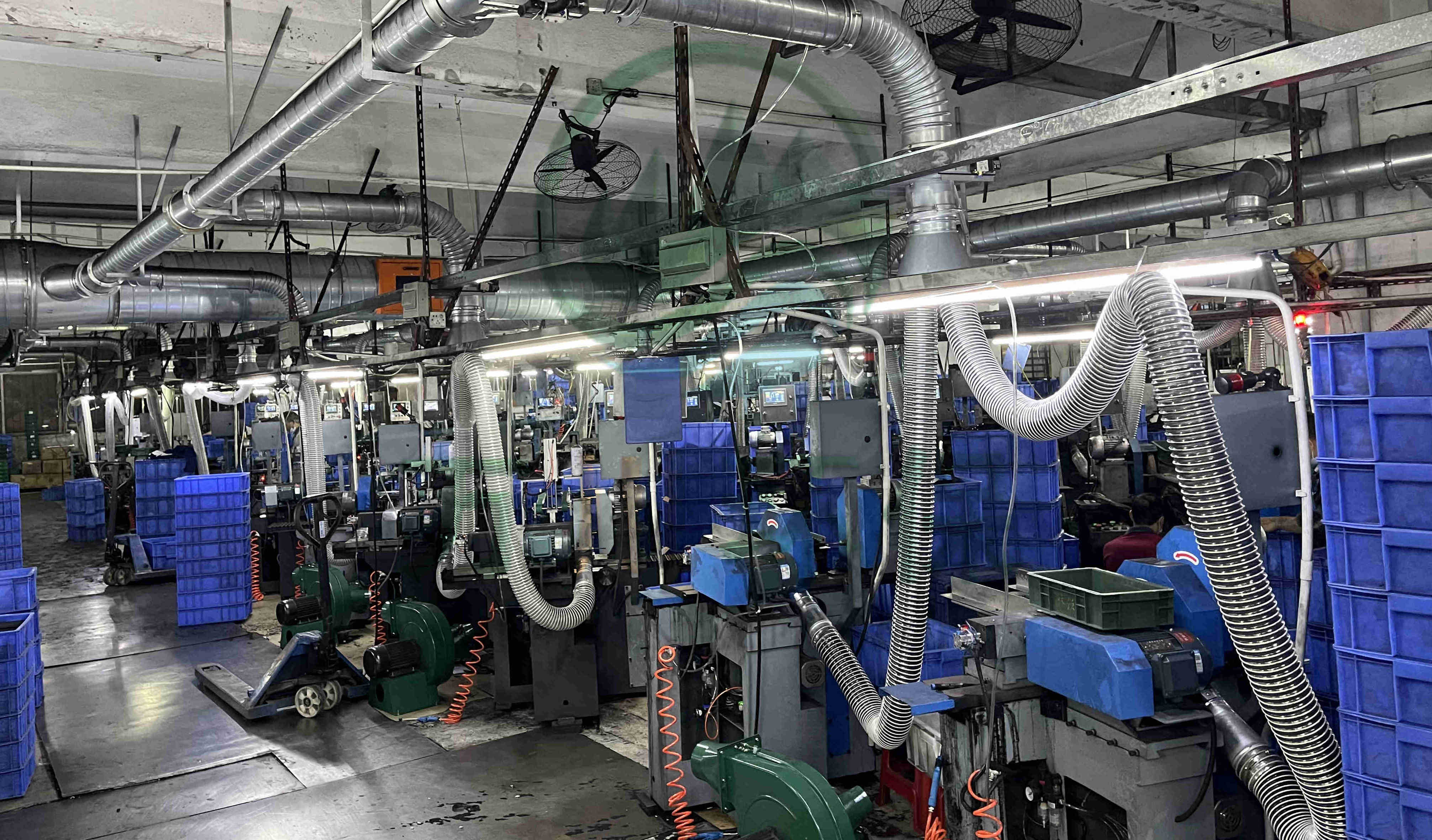對(duì)60臺(tái)磨床進(jìn)行粉塵處理。萬(wàn)川配套一套64000風(fēng)量脈沖布袋除塵器+除塵風(fēng)機(jī)+火星探測(cè)+隔爆+自動(dòng)化電控柜系統(tǒng)。