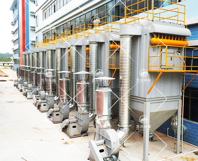 因生產(chǎn)打磨工藝品時(shí)會(huì)產(chǎn)生大量的粉塵氣體,秉承對(duì)員工生產(chǎn)環(huán)境負(fù)責(zé)的態(tài)度,美景實(shí)業(yè)在對(duì)比多家廢氣處理廠家后,最終決定采用萬川環(huán)保廢氣處理設(shè)備--脈沖布袋除塵器。