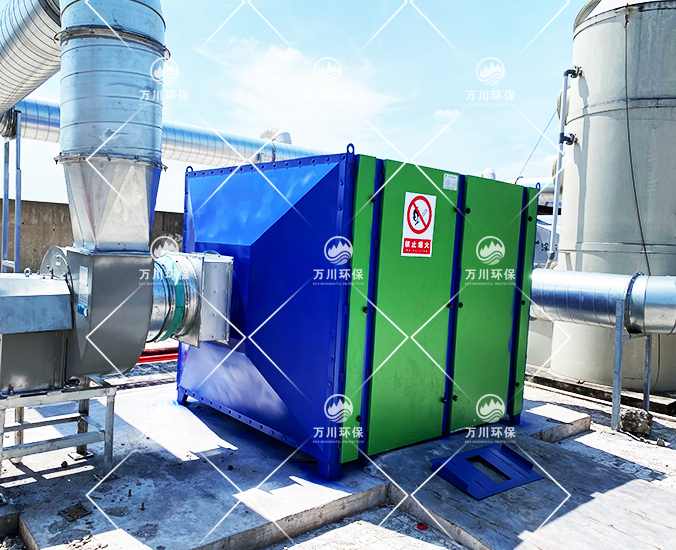 橡膠廢氣從管道進入到設(shè)備內(nèi),穿過第一層噴淋層,用水沖洗廢氣,再進入到第二、第三層填料層,去除水溶性的粉塵和廢氣,最后進入到活性炭吸附層,利用活性炭的吸附力,吸附有機廢氣,達到凈化的效果。